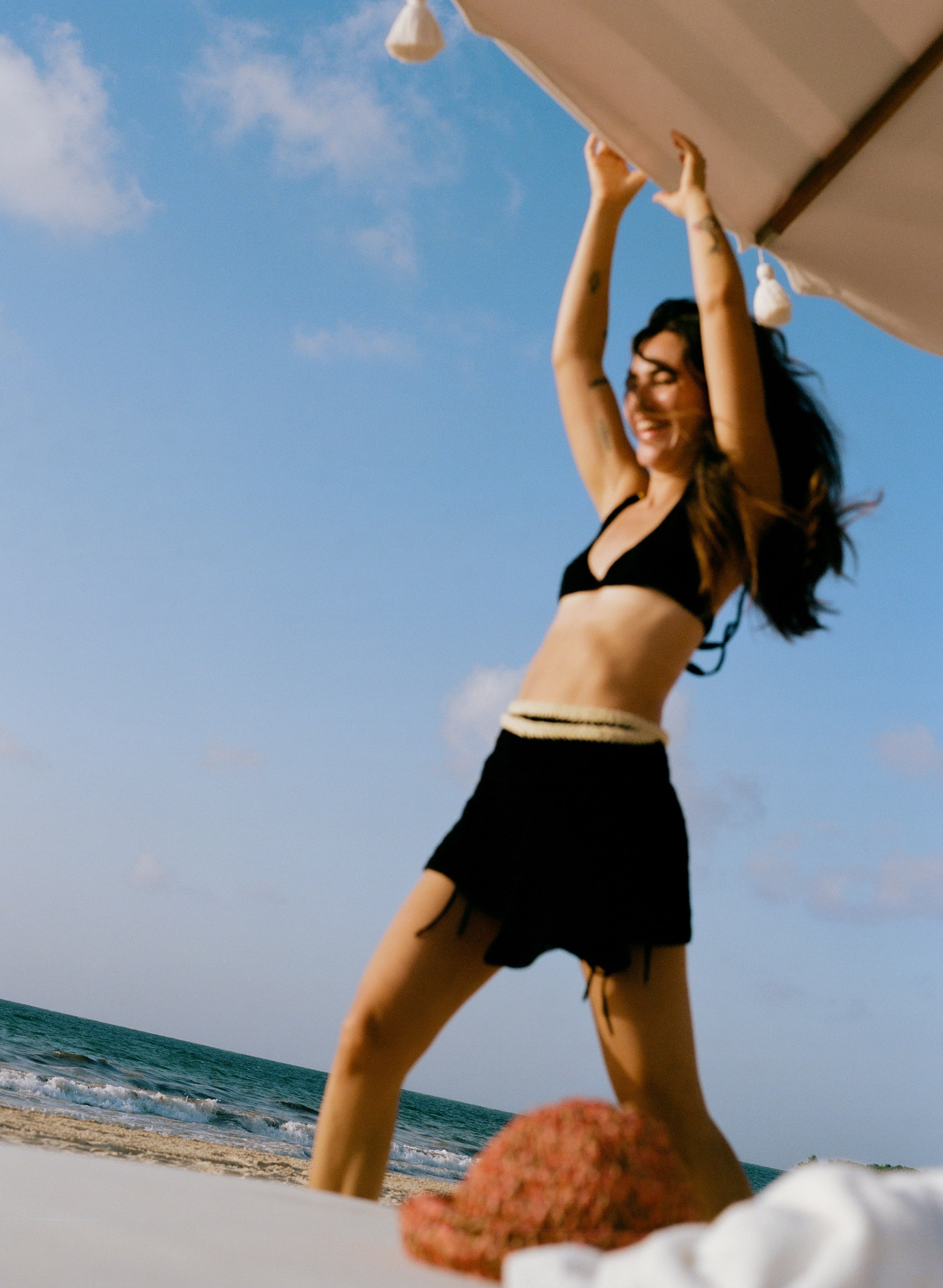 Inspired by the beach, the waves and structure of oysters, Gemsun x Jolie created an exclusive, limited edition JOLIE SUN HAT made out of 100% biodegradable raffia. Profits from the garment are donated to the Billion Oyster Project organization to help clean New York’s harbor by restoring oyster reefs.
