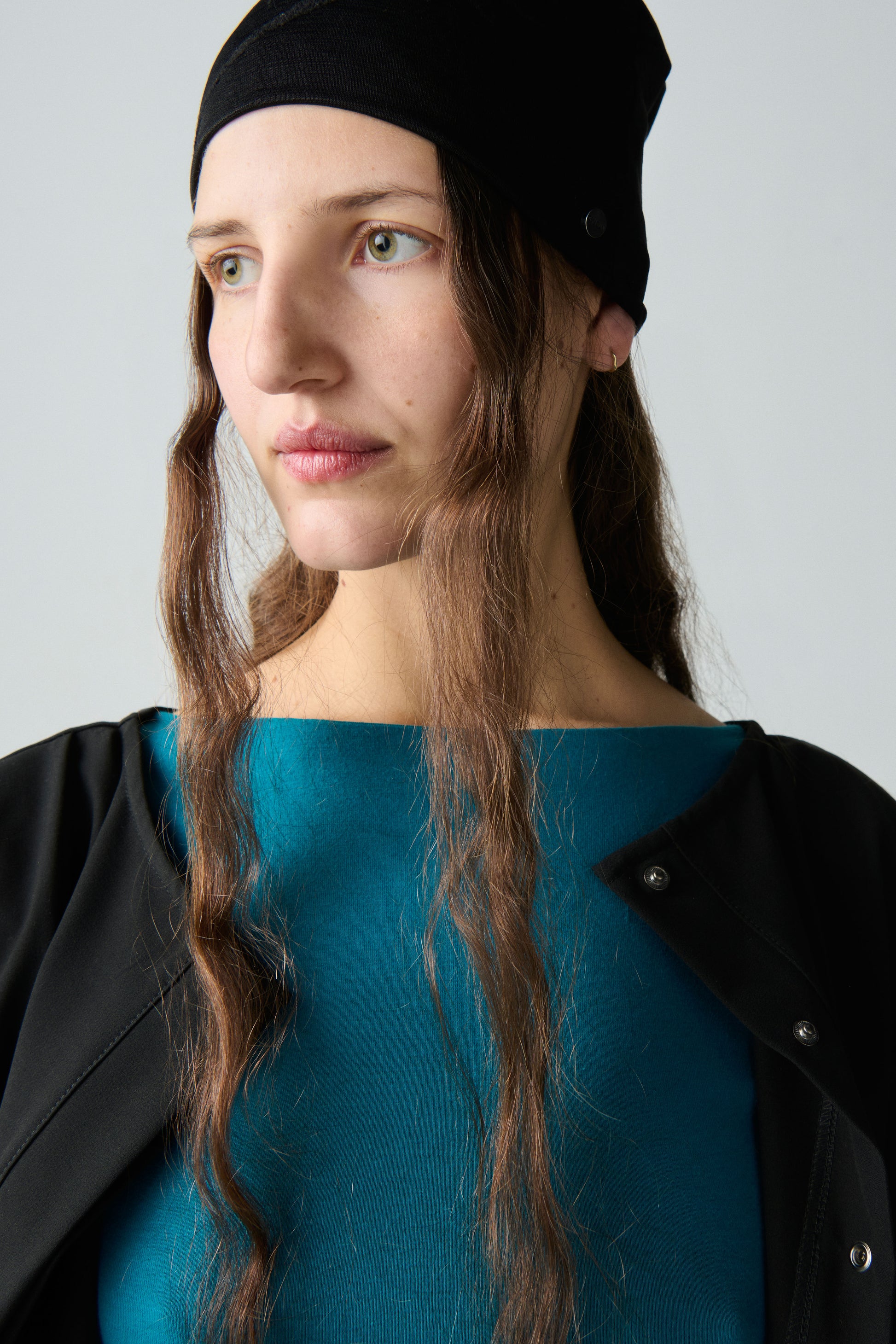 A slightly slouchy beanie, made from a very rayon-poly blend. Sewed with two layers for ultimate comfort and shape.