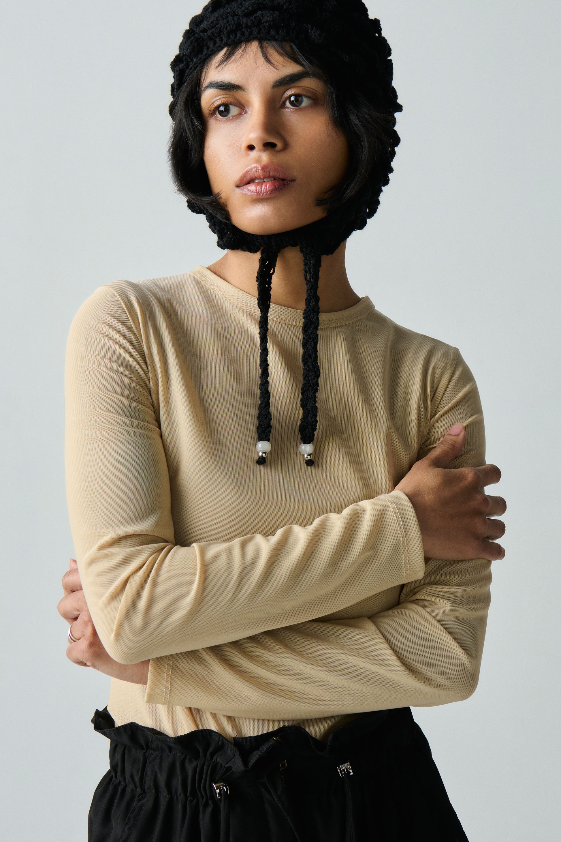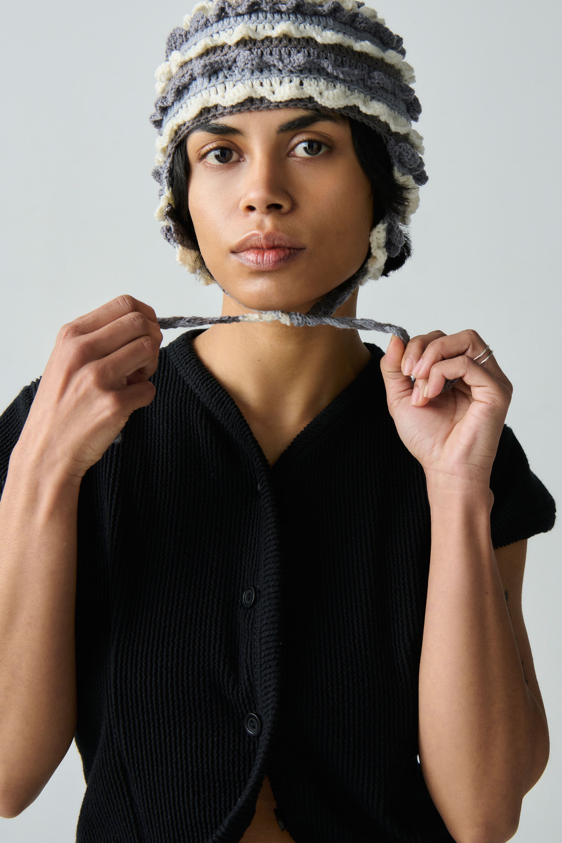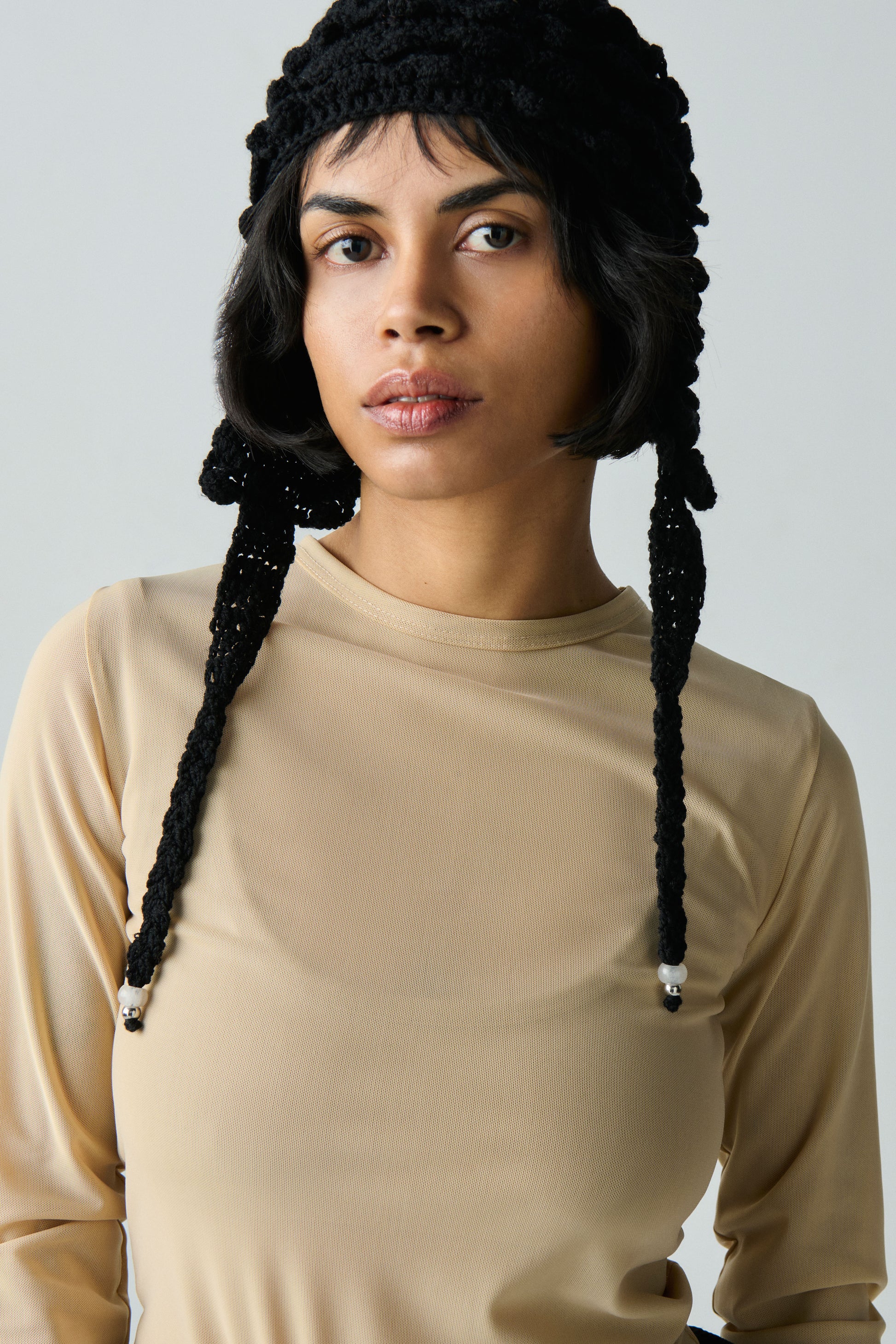 The HIRTE HAT comes with sterling silver and glass beads (depending on the color way).