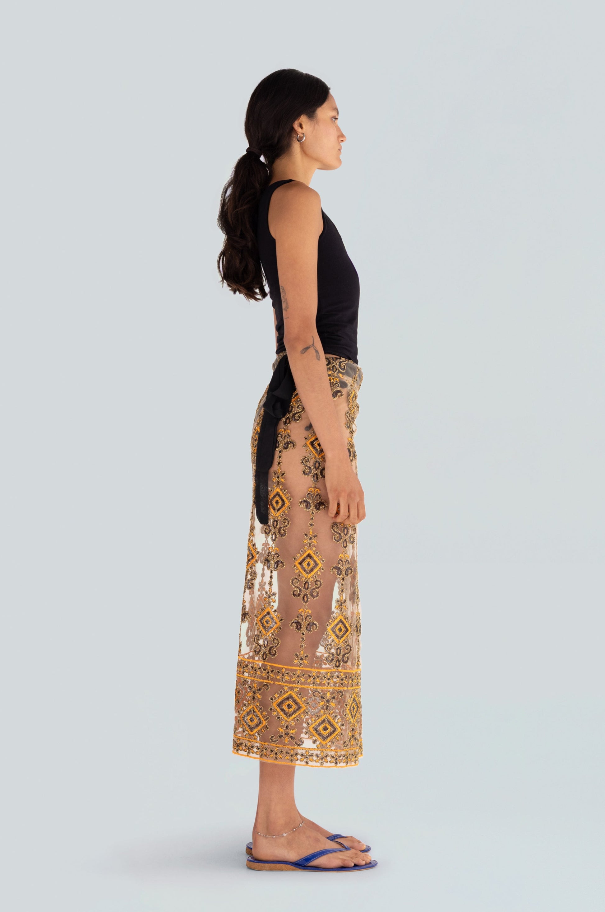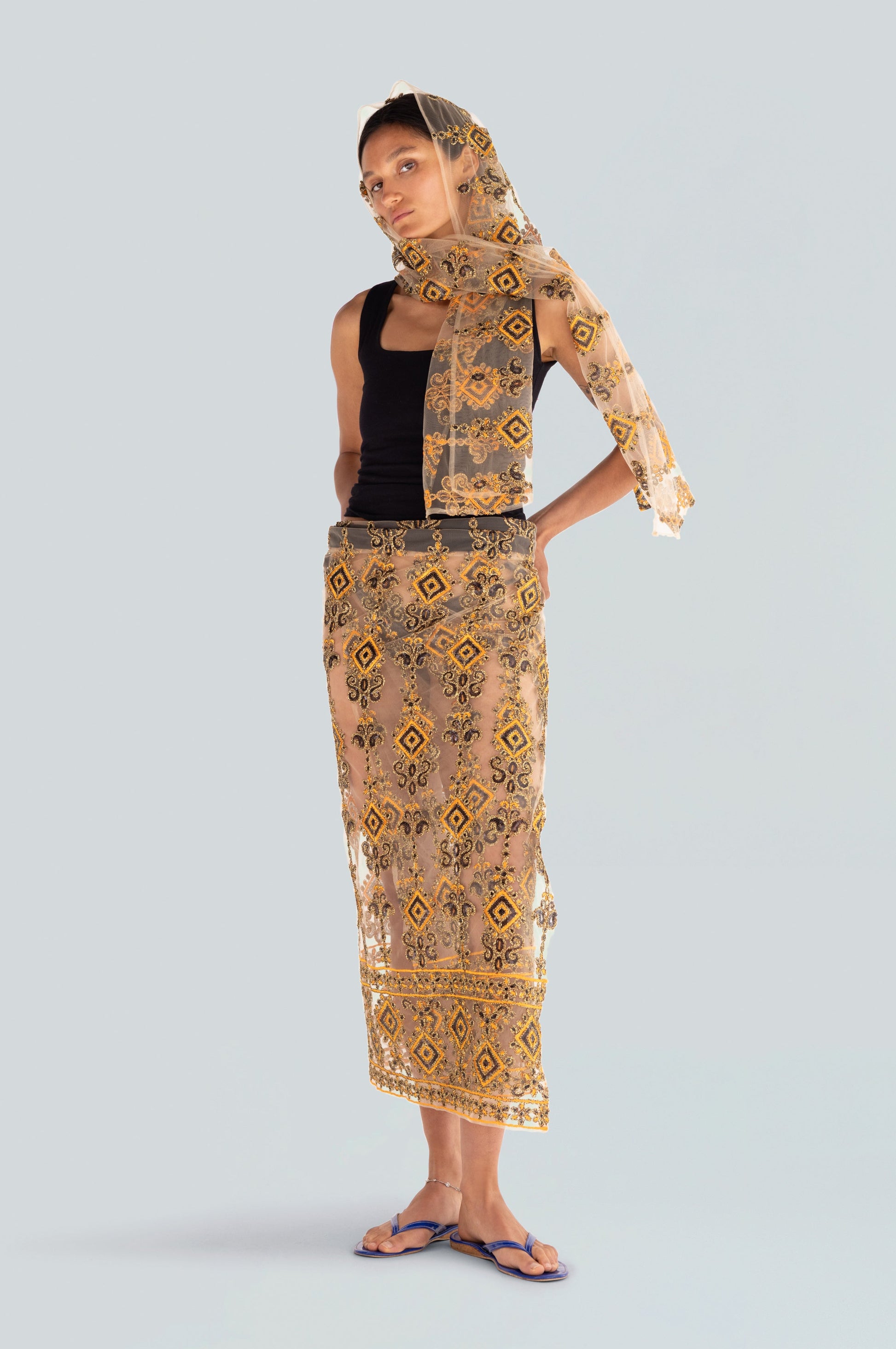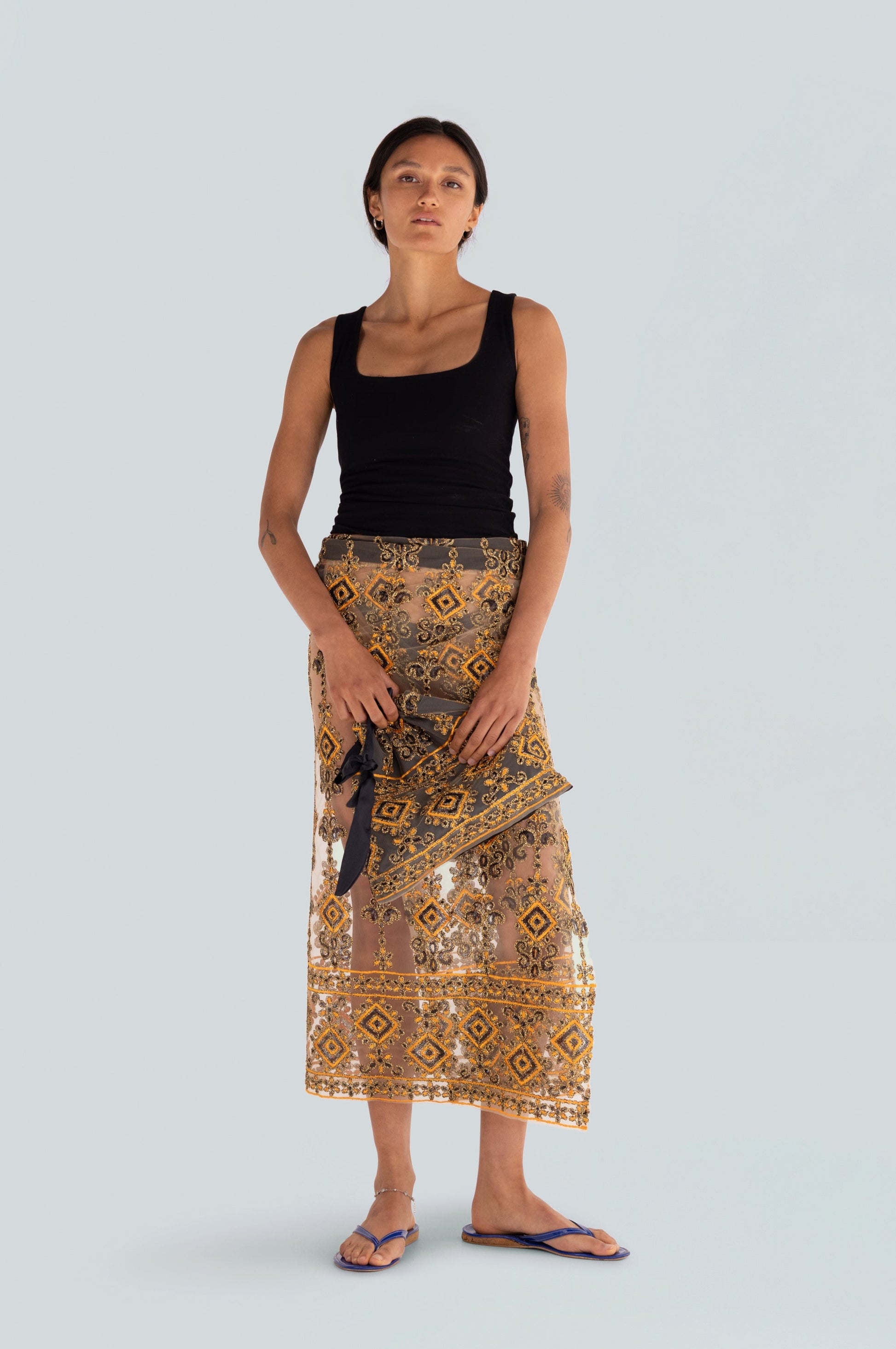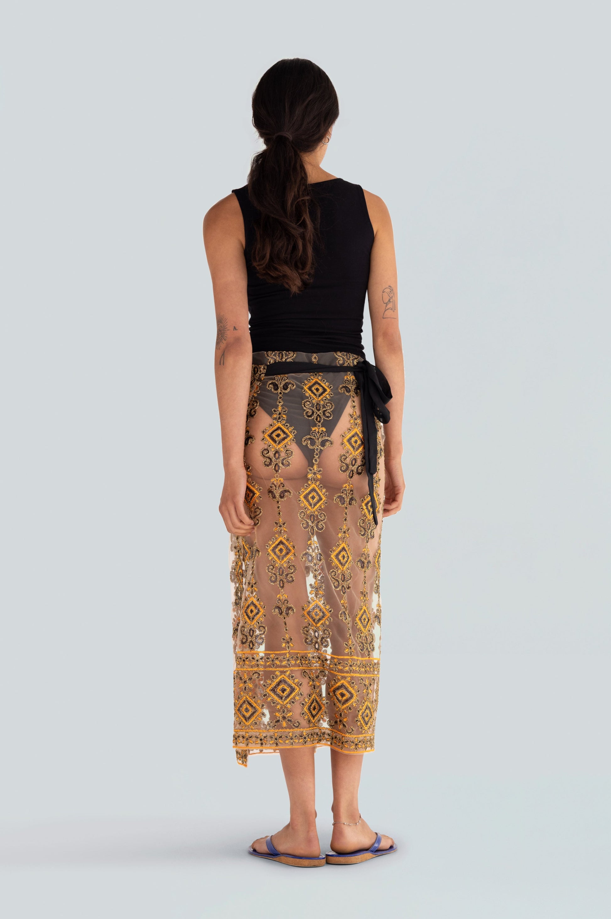 The set comes with a wrapped skirt, multi purpose scarf and a drawstring pouch.