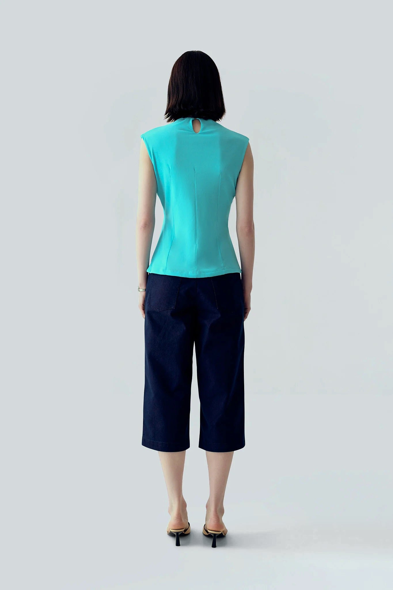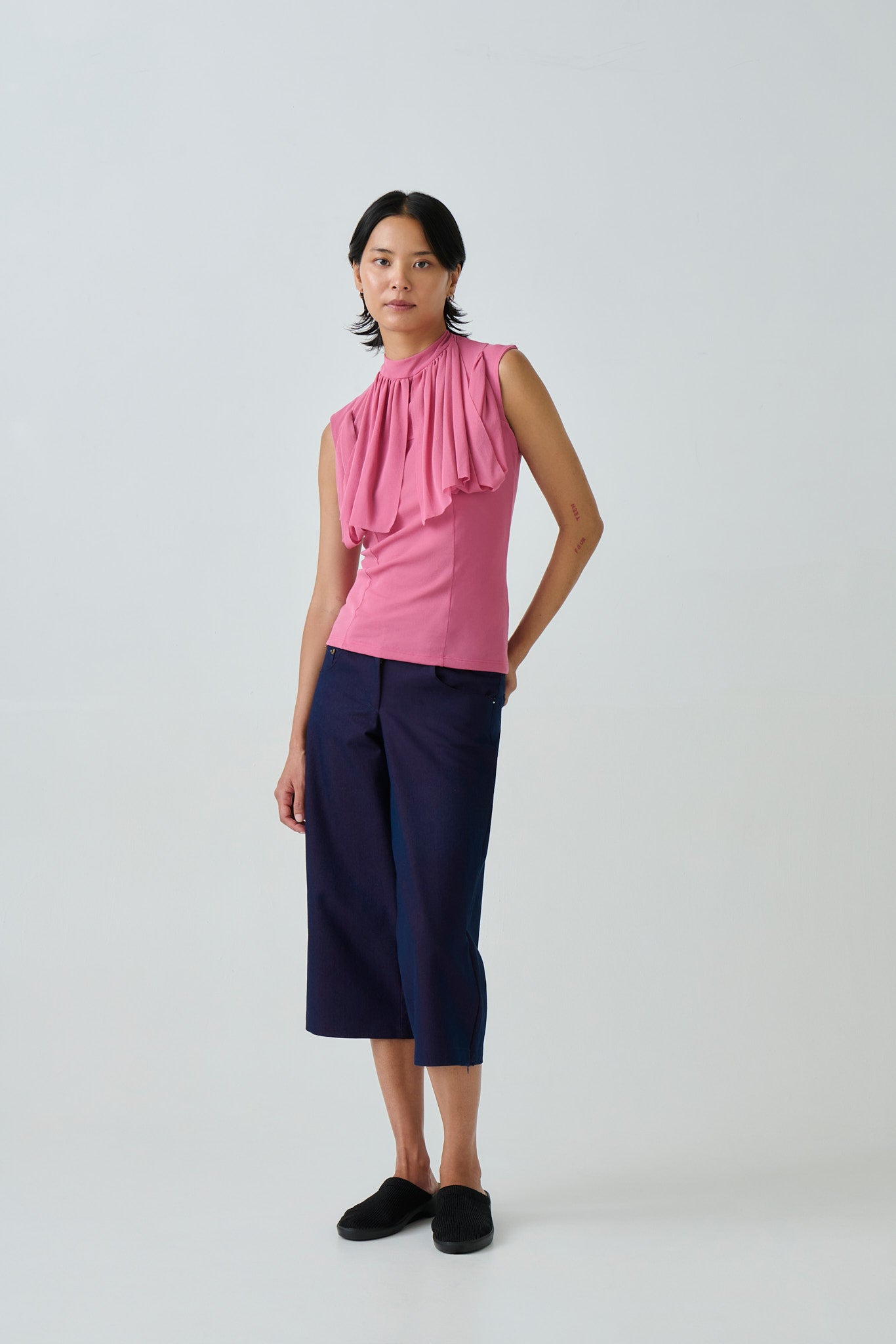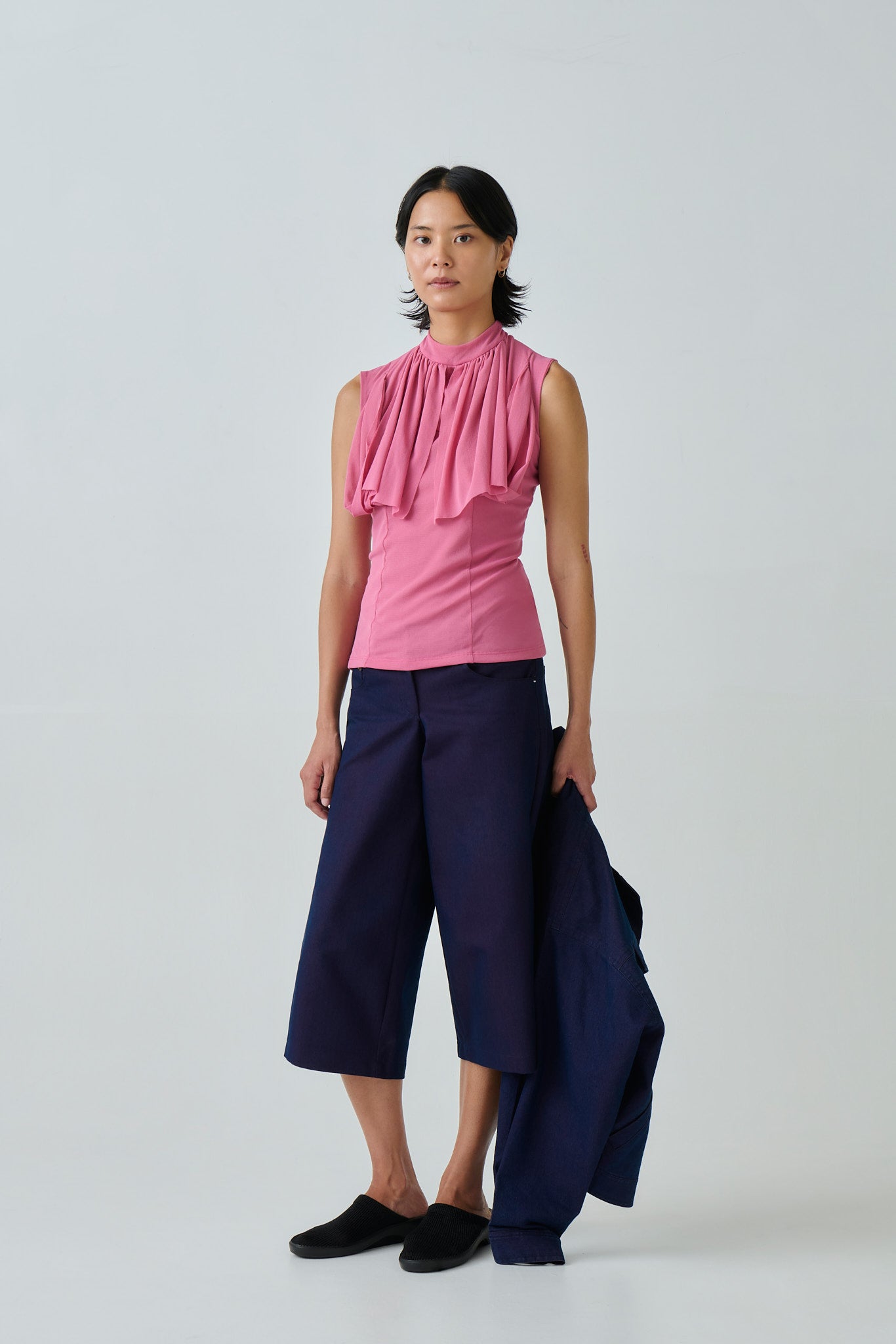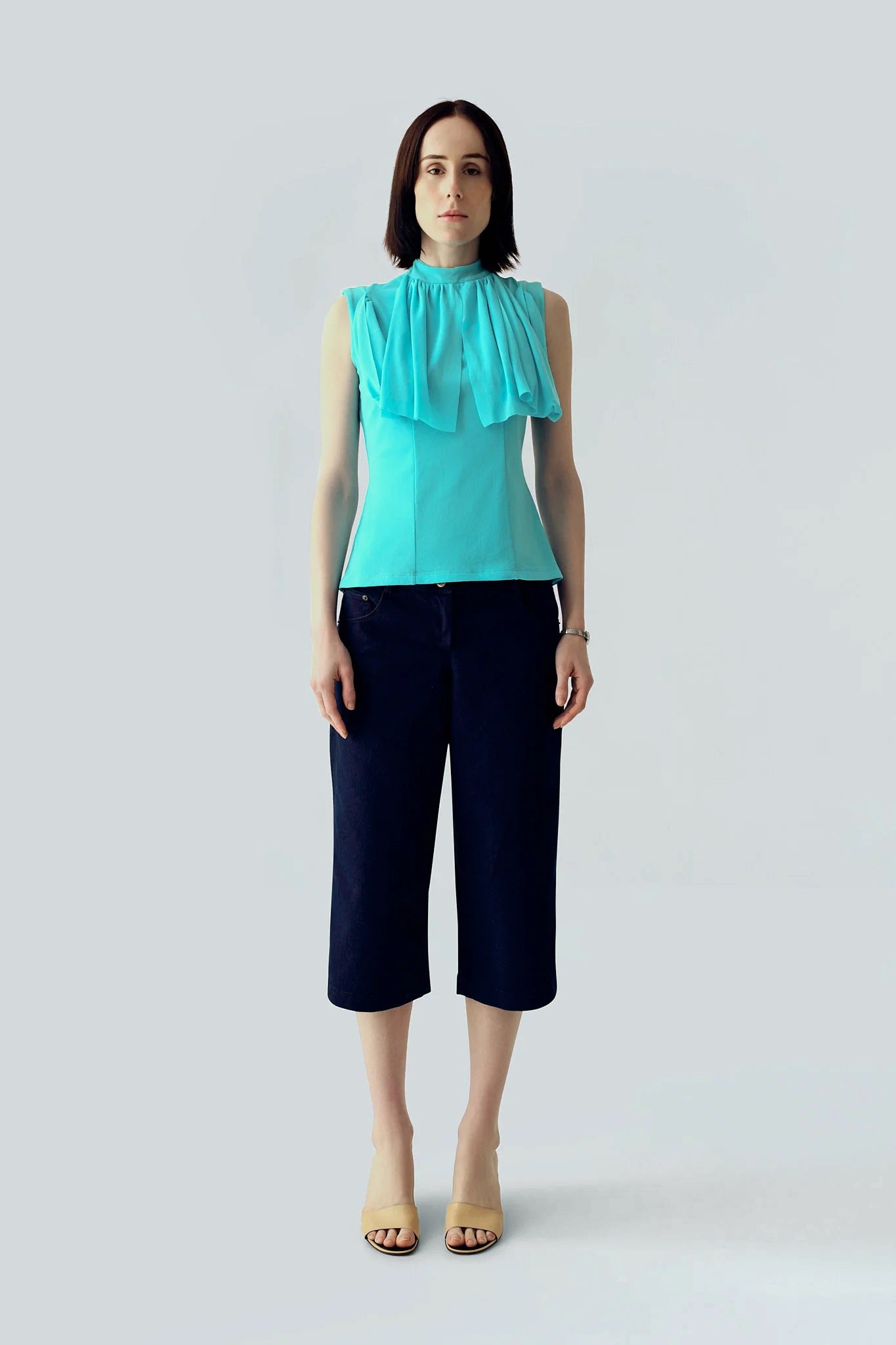 Soft layers of stretchy mesh and a whimsical collar - the Ola Top is inspired by waterfalls and their organic flow. A fitted top that is closed with a shiny shank button on the back.