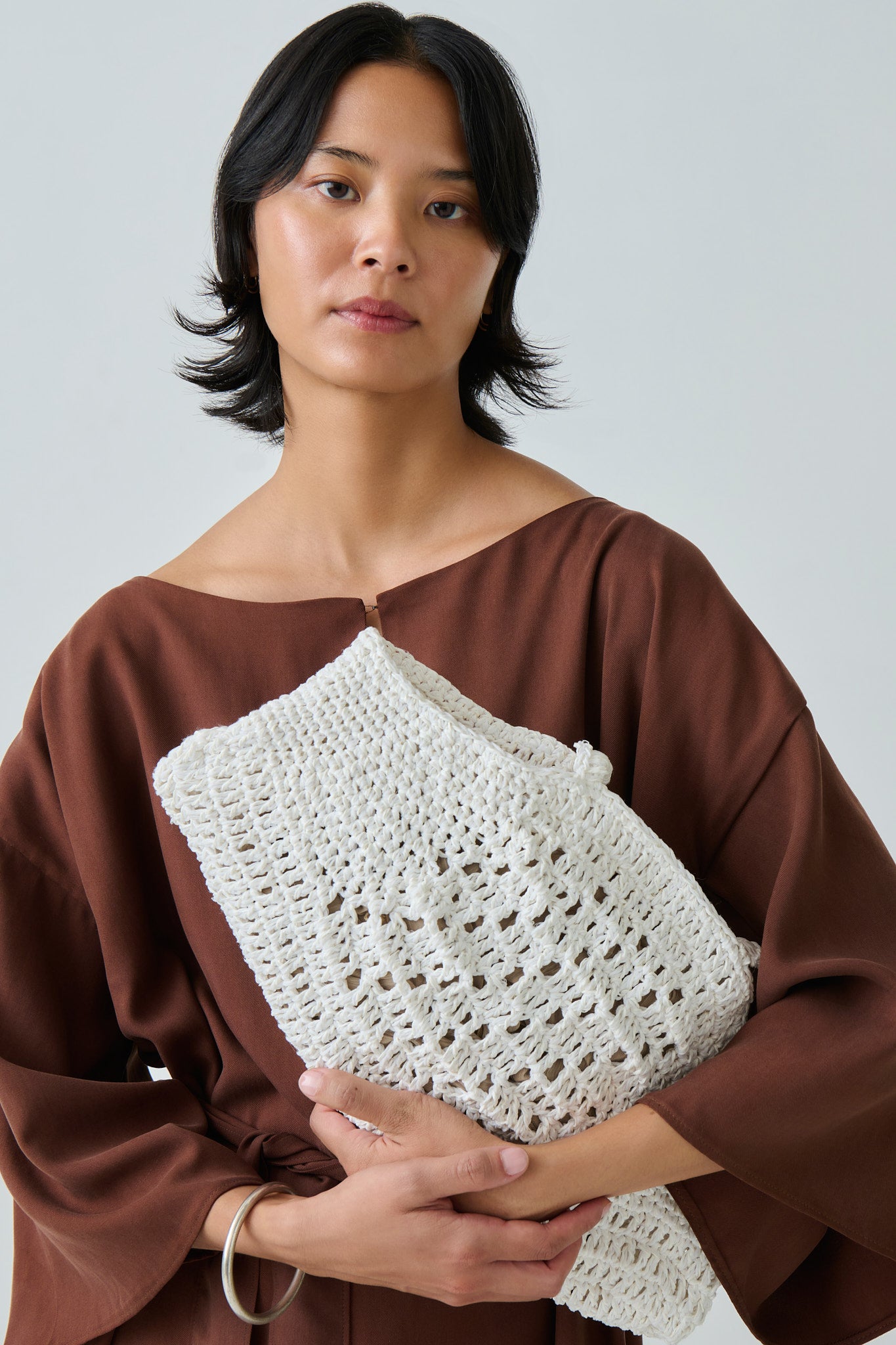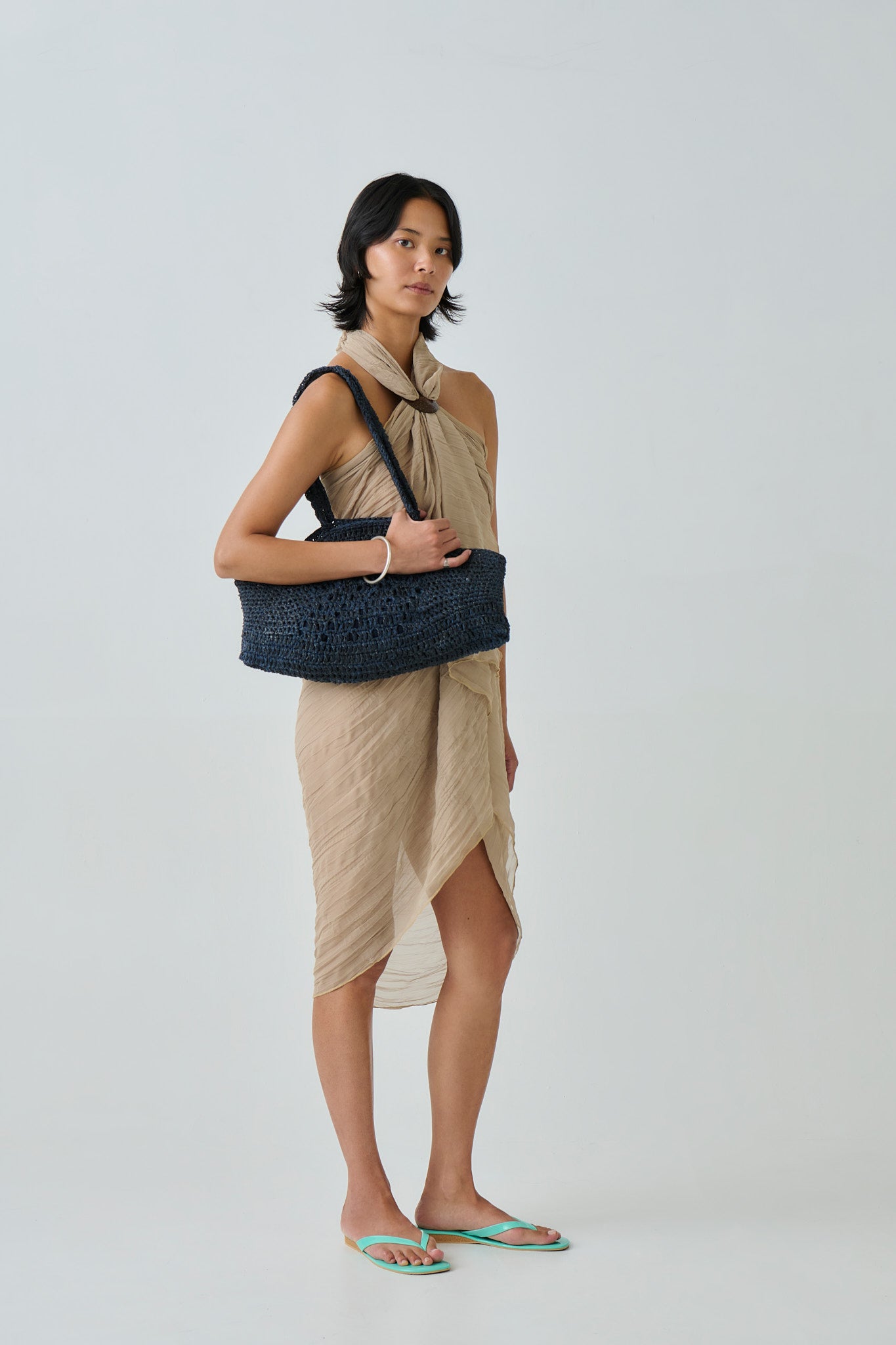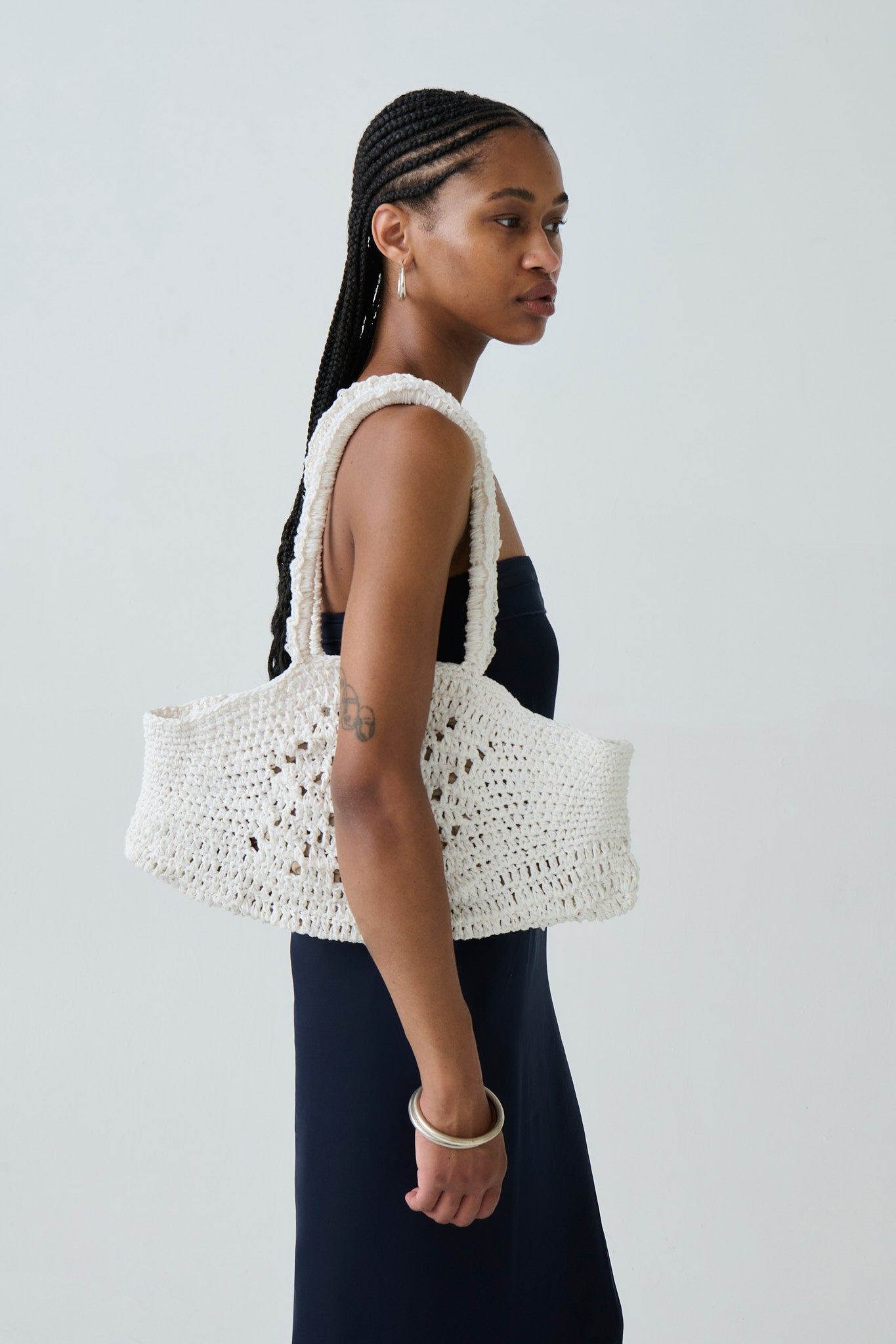 Handmade by women in the US from a blend of recycled cotton and cotton-raffia.