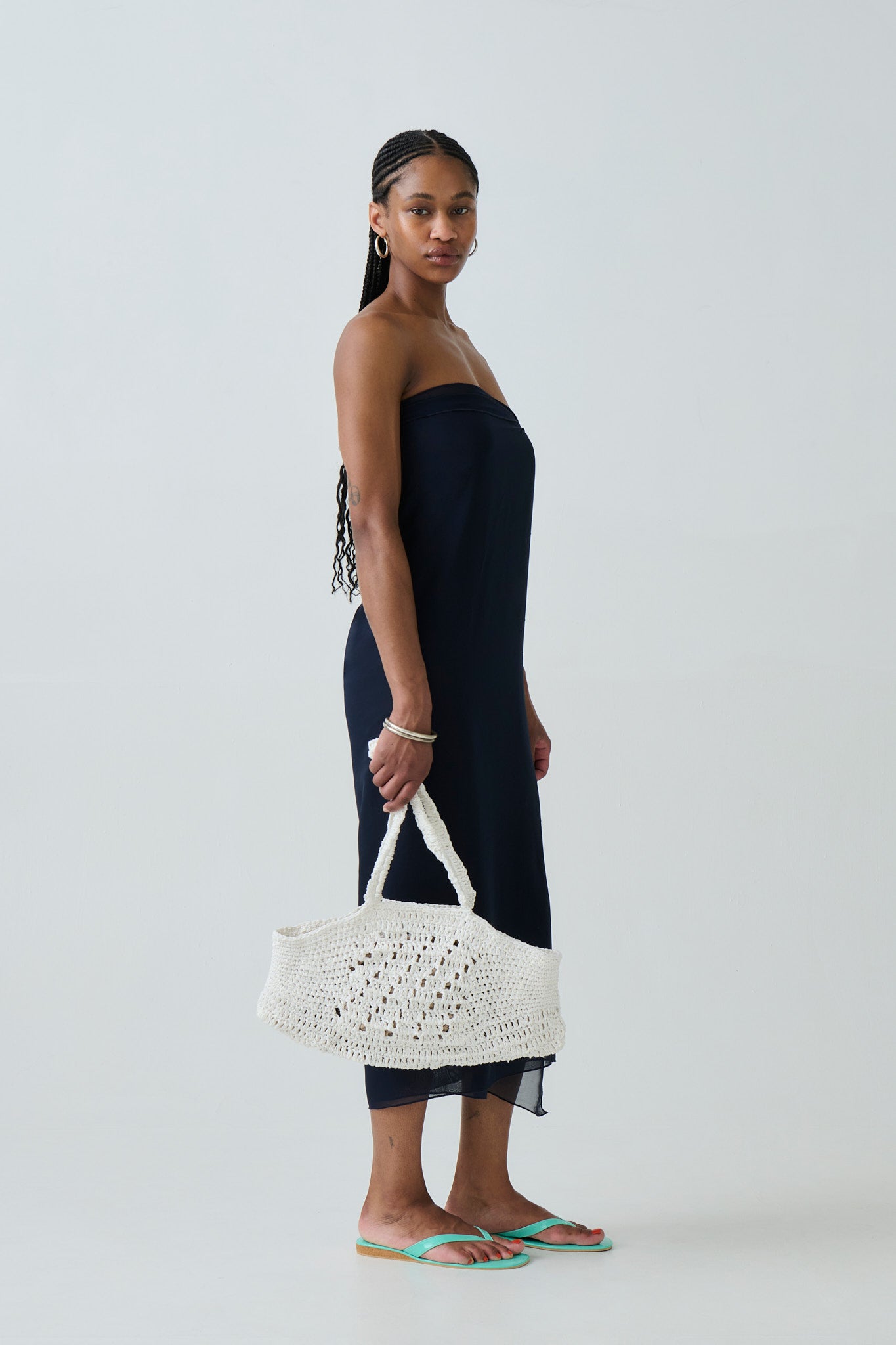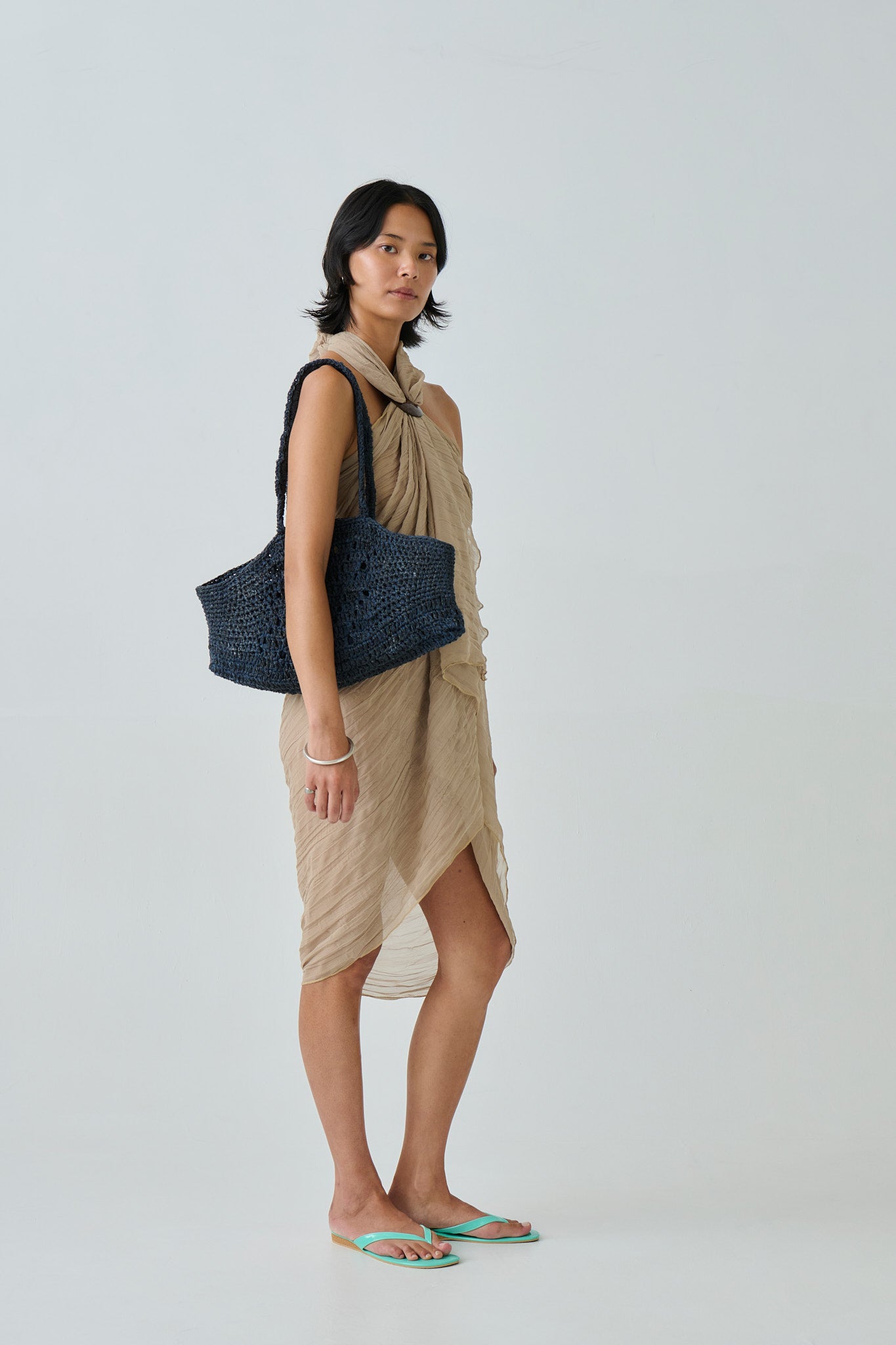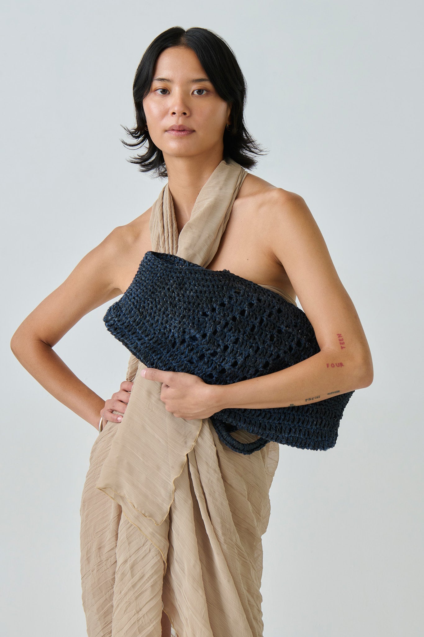 Handmade by women in the US from a blend of recycled cotton and cotton-raffia.